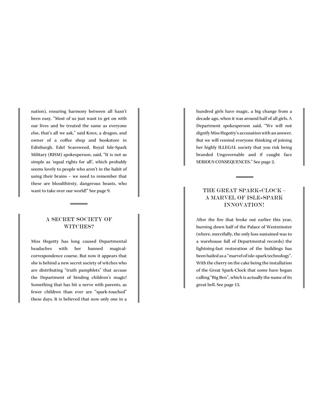 Return to the magical world of witches, royalty and curses in this spellbinding sequel to Witchspark. Miss Hegotty's Secret Society of Witches has a lot of work to do. The Department of Isle-Spark Regulation is up to no good.