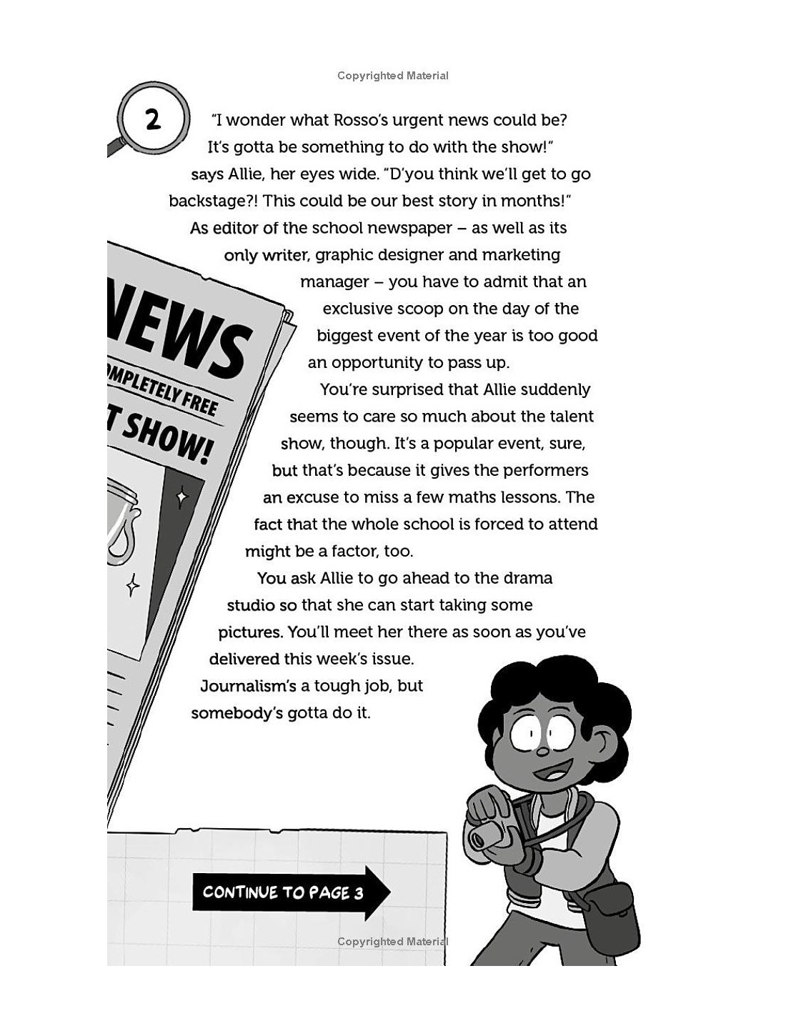 Can YOU solve the case? Choose your suspect, choose your next move – choose the story!YOU VS is a series of interactive adventure stories where the reader gets to choose what happens next! Full of maps, diagrams and illustrations, YOU VS gives readers the chance to star in their own stories: big genre adventures with huge stakes, real heart and a sense of humour. Oh, and lots and lots of endings. In YOU VS The Poison Plot, it’s the eve of the school talent show, but the school’s drama teacher has suddenly collapsed with four witnesses at his side! As editor of the school newspaper and a seasoned journalist, you investigate – and smell foul play.