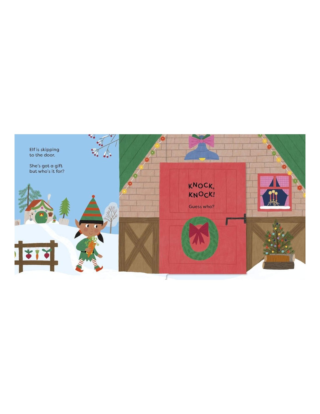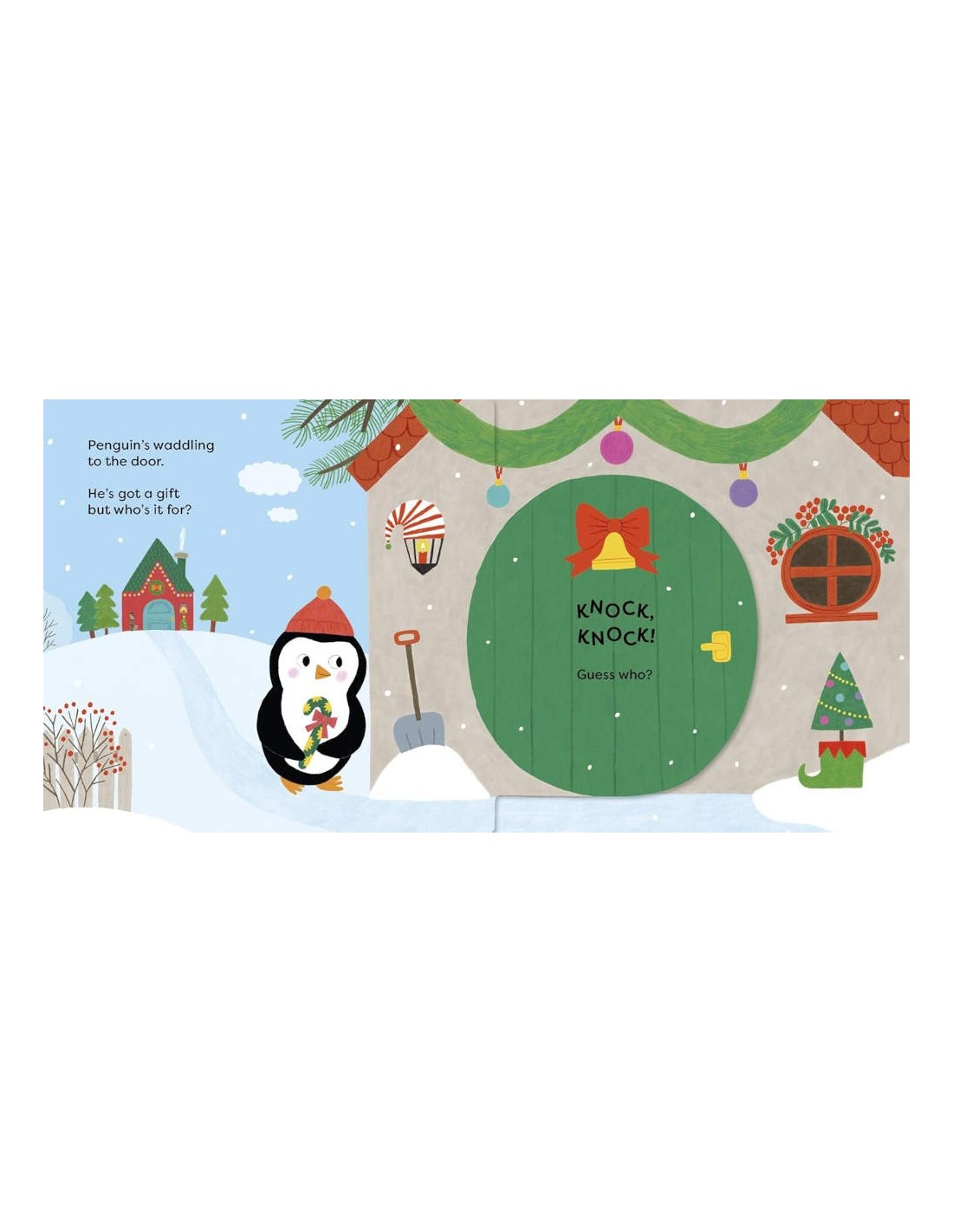 An interactive festive picture book - the perfect stocking filler!Penguin and his Christmas friends are delivering presents. Knock on the door and open it to discover who lives in each little house. Will it be Santa? Will it be Reindeer or perhaps, just perhaps, it's you! With joyful rhyming text, shaped doors to open on every page and a surprise mirror ending, this picture book is full of the joy of the season.