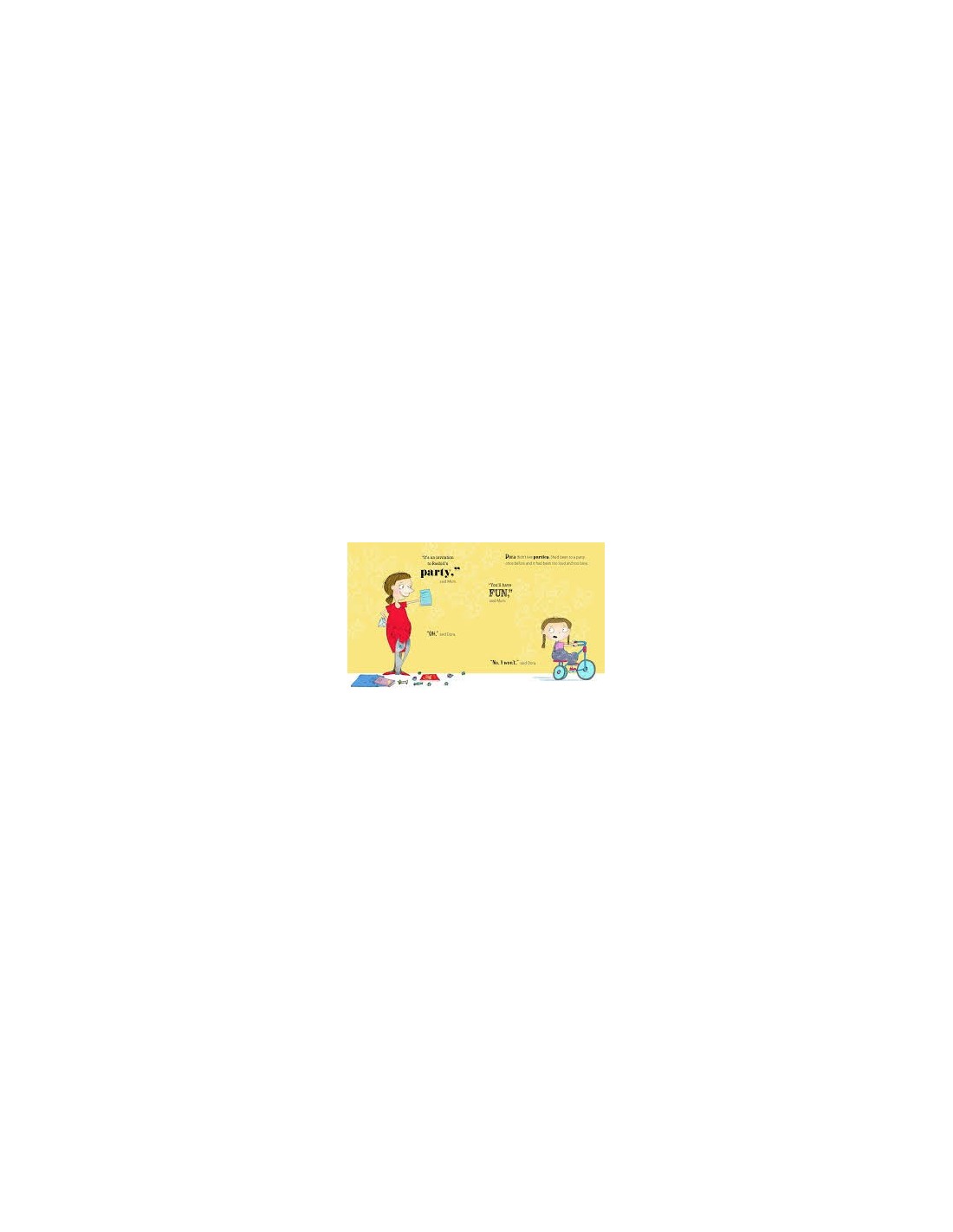 Dora really, really doesn't like parties! They are too loud and too busy. Maybe she won't have to go if a gorilla steals her party dress or if a giant frog eats her shoe!But...what if Dora could find a nice quiet place at the party, and someone else who doesn't like noisy parties? Then they could have a lovely time - in their own way. and that would be...absolutely, completely, totally and perfectly OK!