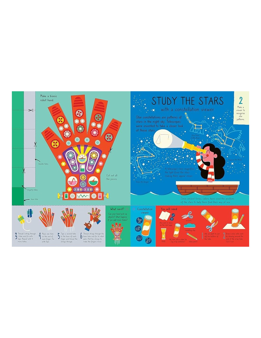 HIGHLT COMMENDED for THE WEEK JUNIOR BOOK AWARDS 2023: CHILDREN'S BOOK OF THE YEAR - STEMJOINT SILVER WINNER in the JUNIOR DESIGN AWARD 2023: BEST DESIGNED/ILLUSTRATED BOOK FOR CHILDRENA one-of-a-kind project book that turns into 30 incredible inventions. The Extraordinary Book That Invents Itself turns itself into rockets, code-breakers, bionic hands, balancing acrobats, demolition balls, constellation viewers and many more ingenious human inventions. Each invention is introduced very simply, with the scientific and engineering principles behind it, and all the templates, tips and instructions to create it yourself.